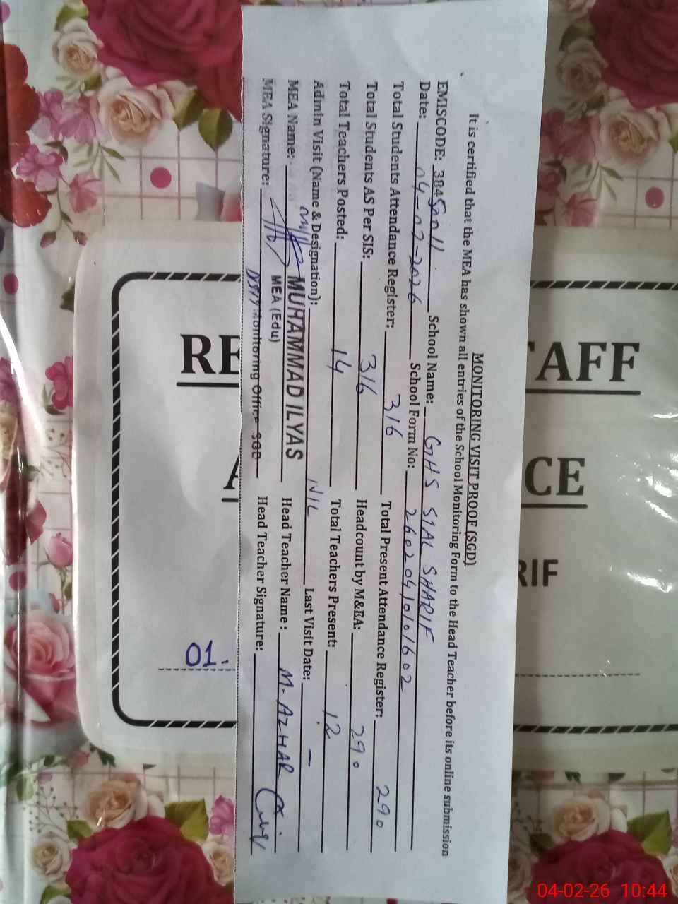 | EMIS Code: 38450011 | Name of School: GHS SIAL SHARIF | |||