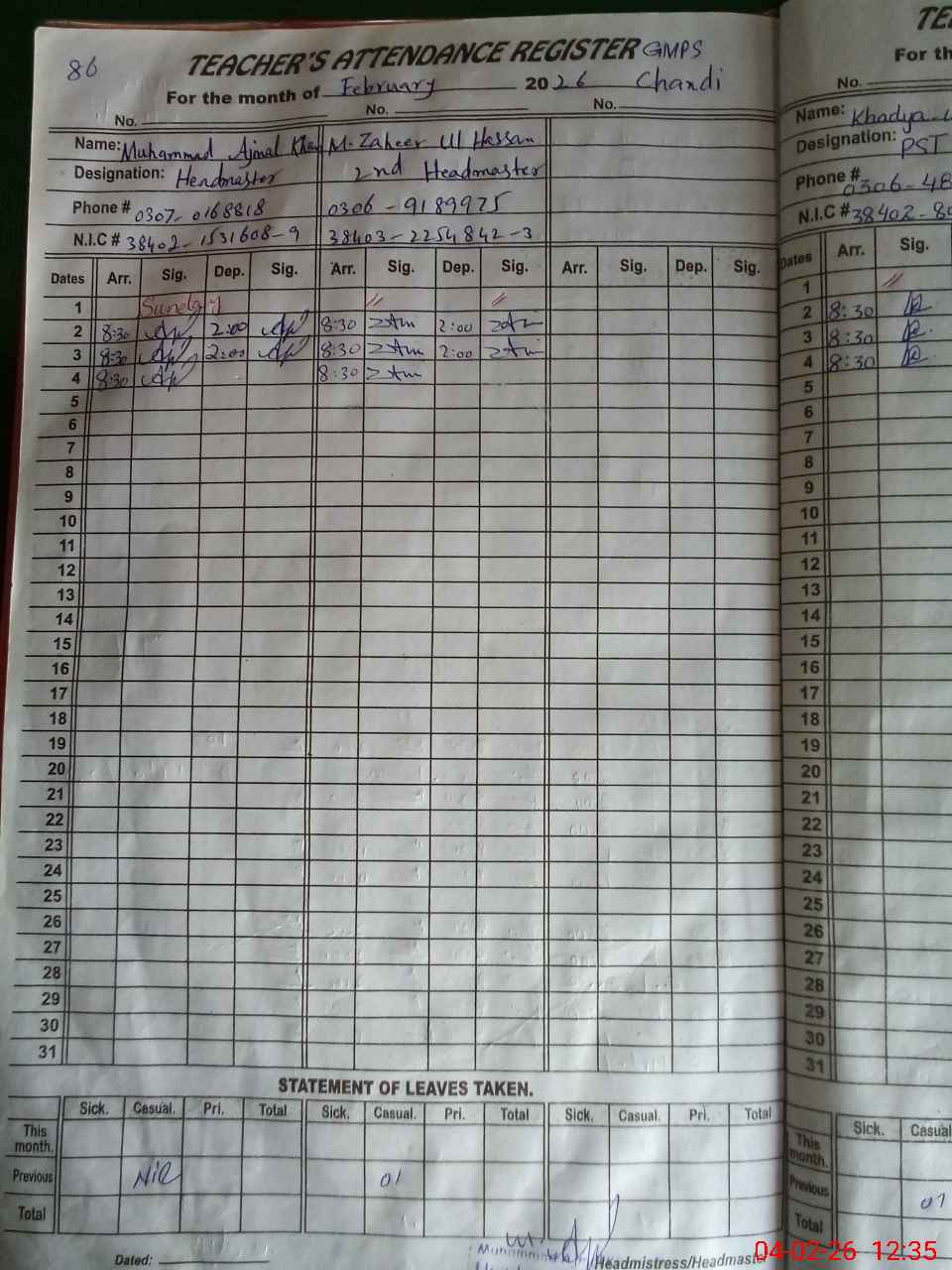 | Name: MU**** AJ**** KH**** Designation: (School Headmaster's/Headmistress's) PTC/JV Phone/Cell Number: 03**** |