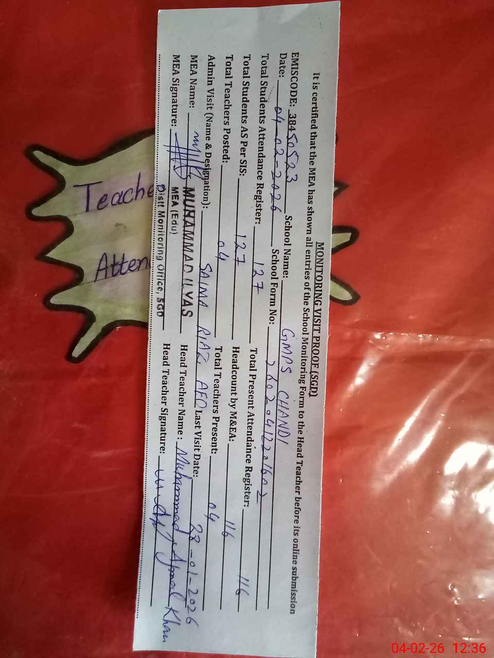 | EMIS Code: 38450523 | Name of School: GMPS CHANDI | |||
