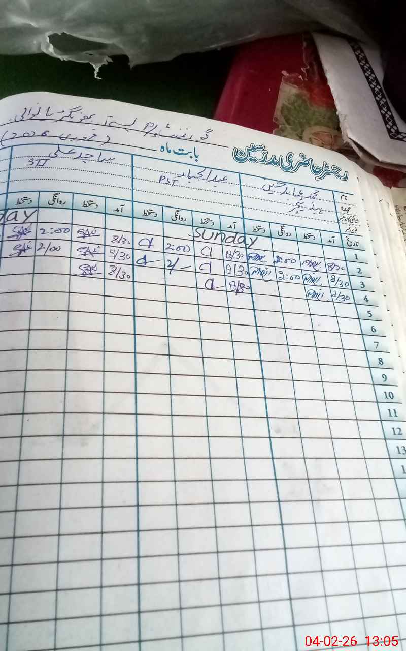 | CNIC | Full Name | Designation | R/C | Absence During Last Calender Month |