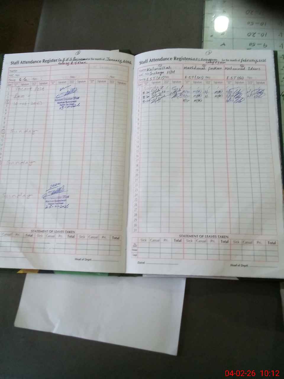 | Leave | Duty | Absent | Maternity | Medical | Ex- Pak |