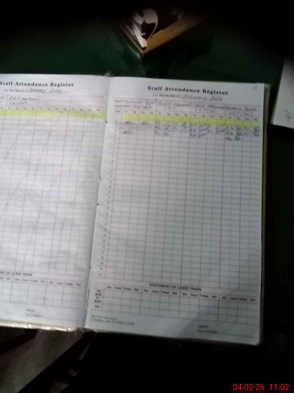 | Leave | Duty | Absent | Maternity | Medical | Ex- Pak |