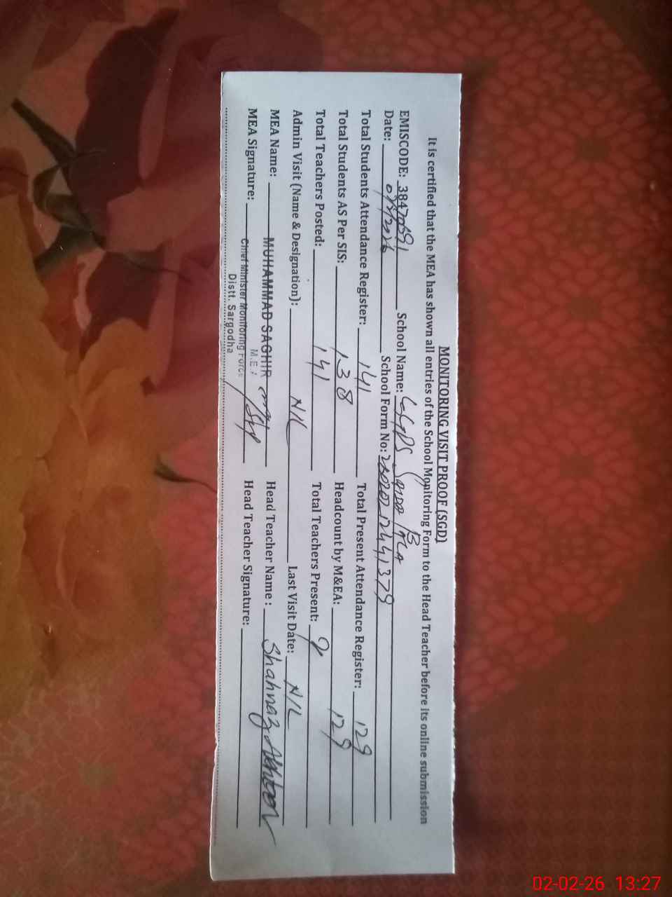 | Certified that this School was Inspected by the Undersigned MEA/DMO Today and the Information Stated Above is as Per Record. | |||||