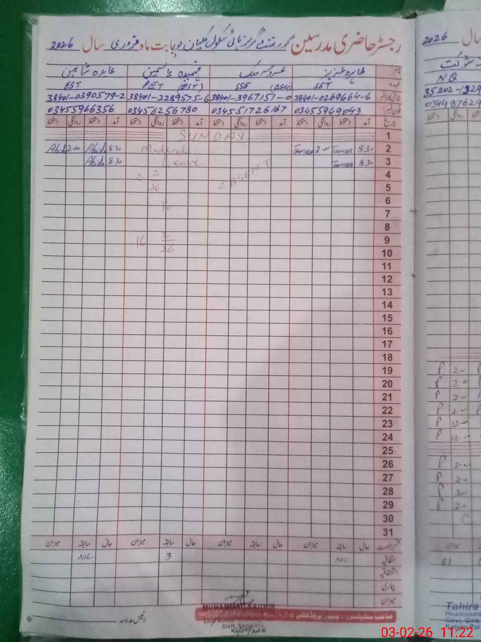 | Name: TA**** AZ**** Designation: (School Headmaster's/Headmistress's) S.S.T.(Arts) Phone/Cell Number: 03**** |