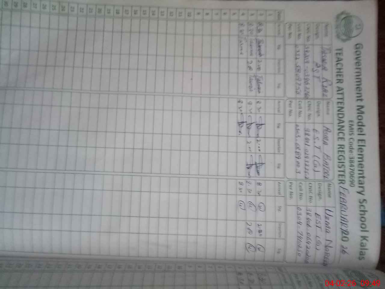 | Name: TA**** RI**** Designation: (School Headmaster's/Headmistress's) PST Phone/Cell Number: 03**** |