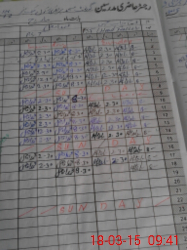 | CNIC | Full Name | Designation | R/C | Absence During Last Calender Month |