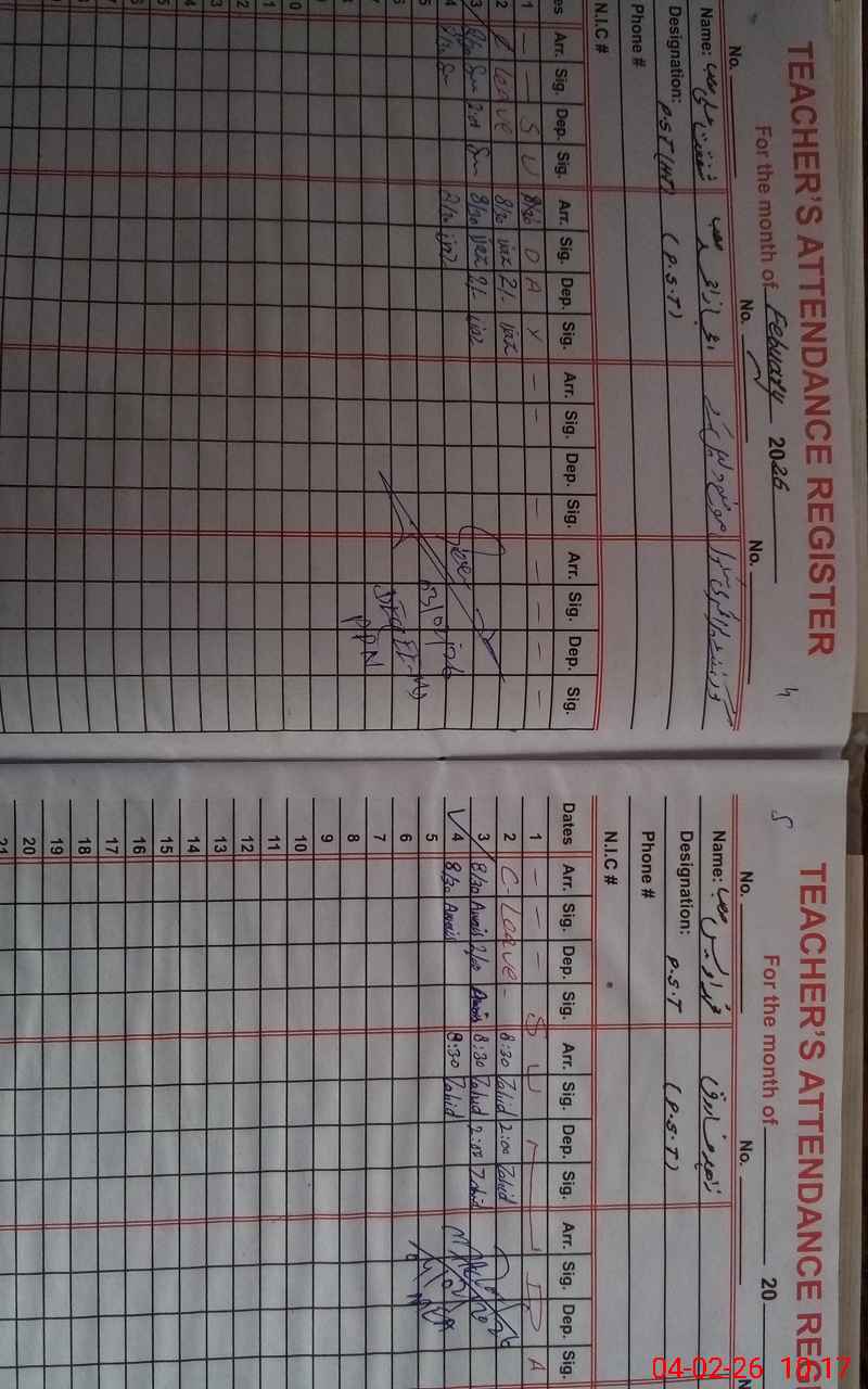 | Name: SH**** AL**** Designation: (School Headmaster's/Headmistress's) PST Phone/Cell Number: 03**** |