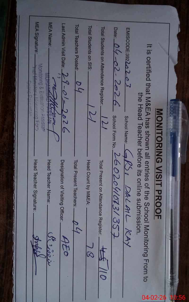 | EMIS Code: 39220203 | Name of School: GPS MOUZA DALAIL KAY NO 1 P/O 22/E.B | |||