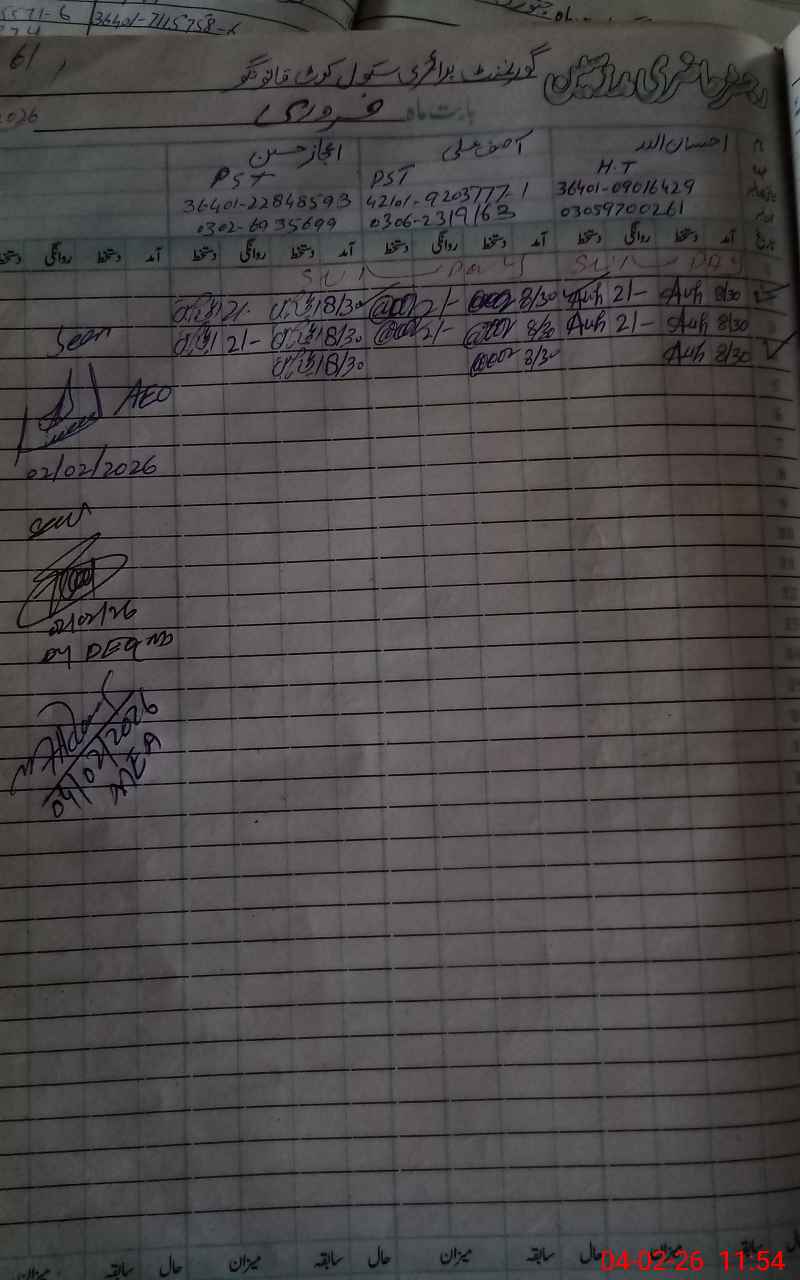 | Name: AH**** UL**** Designation: (School Headmaster's/Headmistress's) PST Phone/Cell Number: 03**** |
