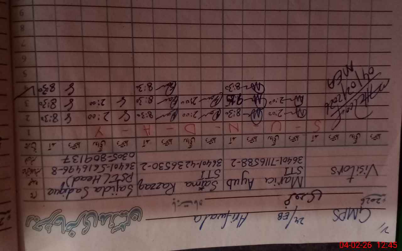 | Monitoring Date: 04-02-2026 | Start Time: 04-02-2026 12:41 PM | End Time: 04-02-2026 01:25 PM | Name of MEA: MU**** HA**** | |