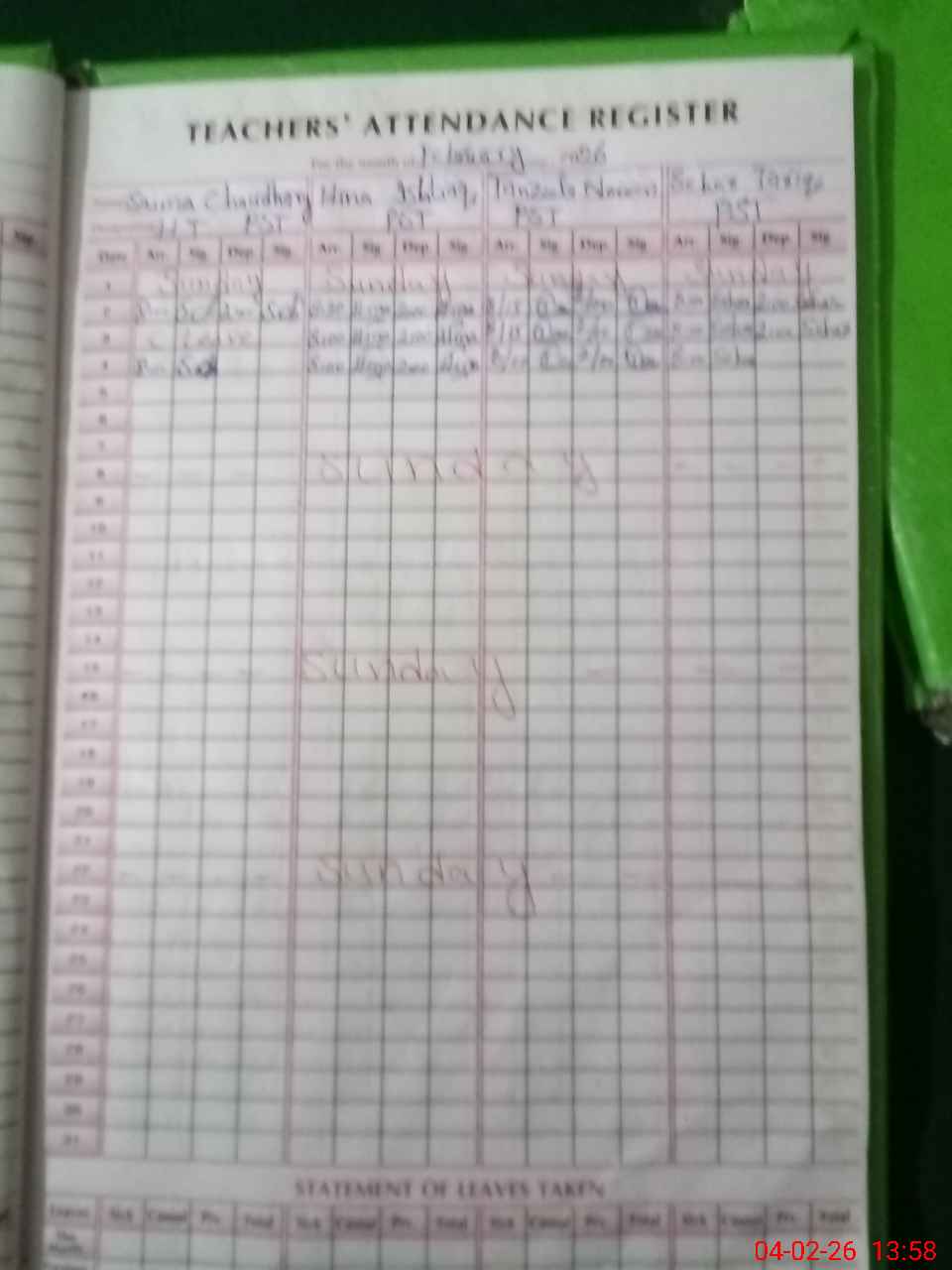 | Name: SA**** CH**** Designation: (School Headmaster's/Headmistress's) PST Phone/Cell Number: 03**** |
