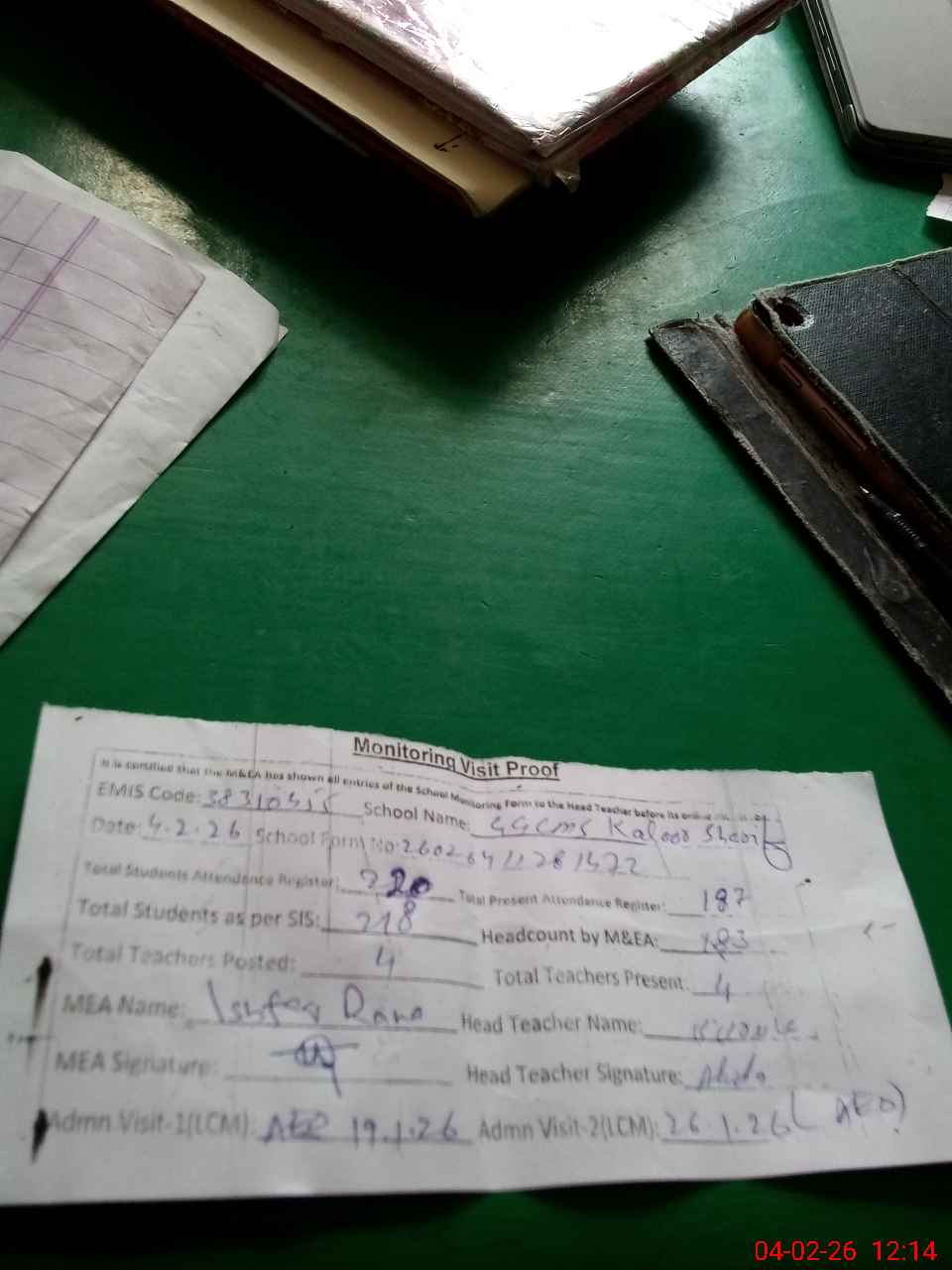 | EMIS Code: 38310455 | Name of School: GGCMS KALOOR SHARIF | |||