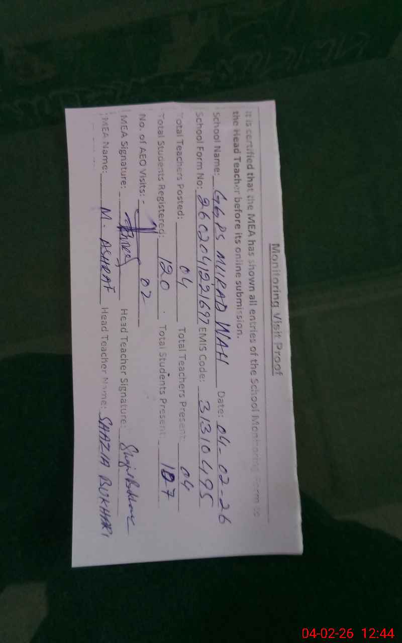 | EMIS Code: 31310495 | Name of School: GGPS MURAD WAH | |||