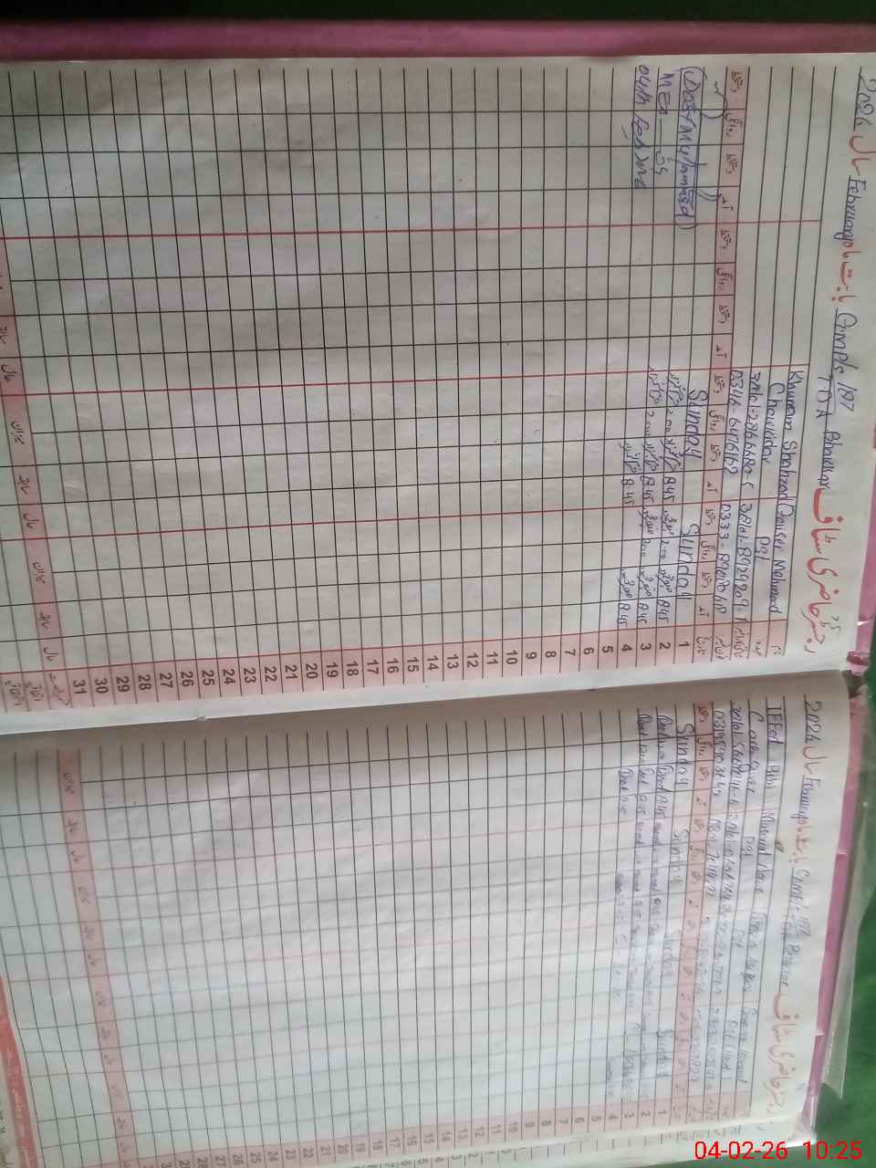 | CNIC | Full Name | Designation | R/C | Absence During Last Calender Month |