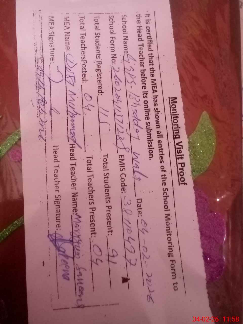 | EMIS Code: 38110497 | Name of School: GGPS BHADDA BAKHRA WALA | |||