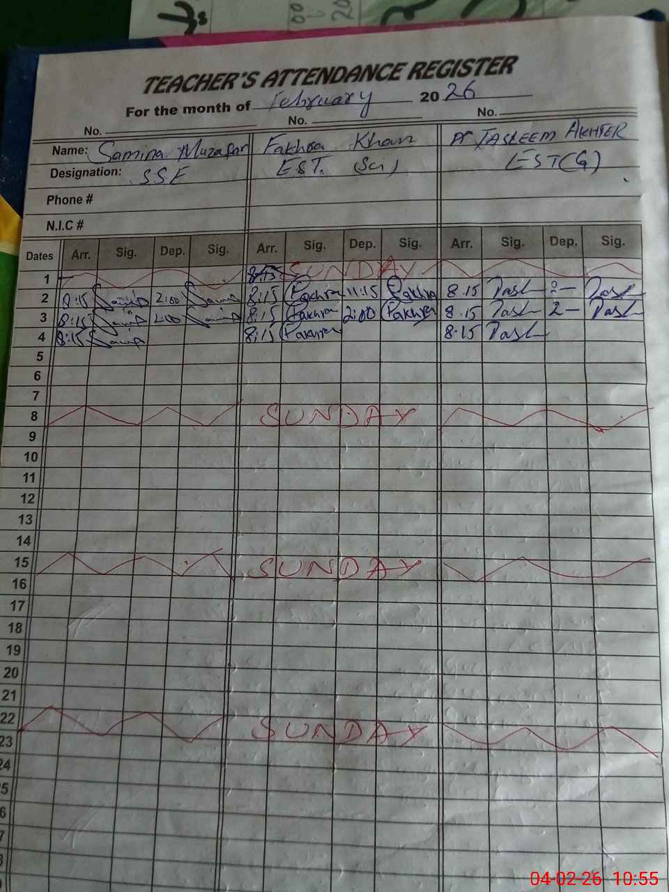 | Name: SA**** MU**** Designation: (School Headmaster's/Headmistress's) SSE Phone/Cell Number: 03**** |