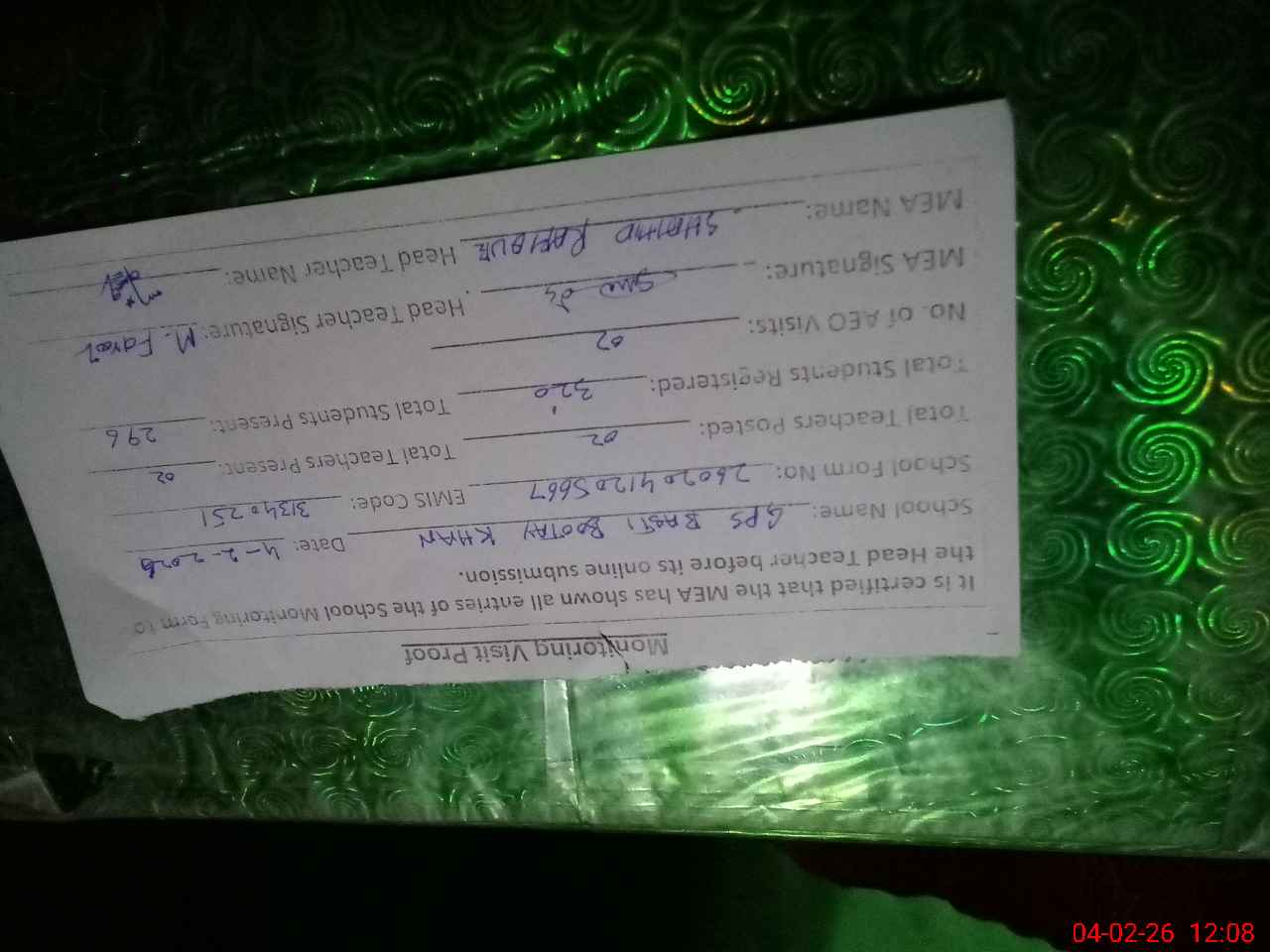 | EMIS Code: 31340251 | Name of School: GPS BASTI BOOTAY KHAN | |||