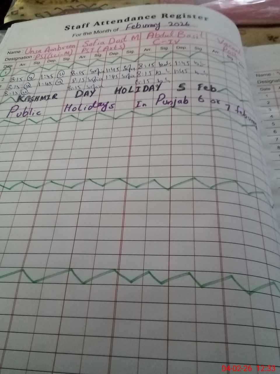 | CNIC | Full Name | Designation | R/C | Absence During Last Calender Month |