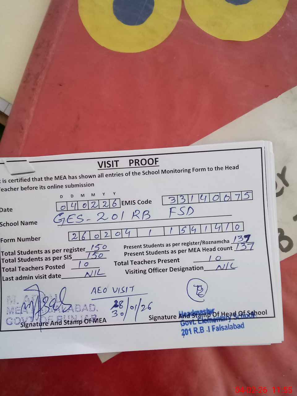 | EMIS Code: 33140075 | Name of School: GES CHAK 201 RB I FSD | |||