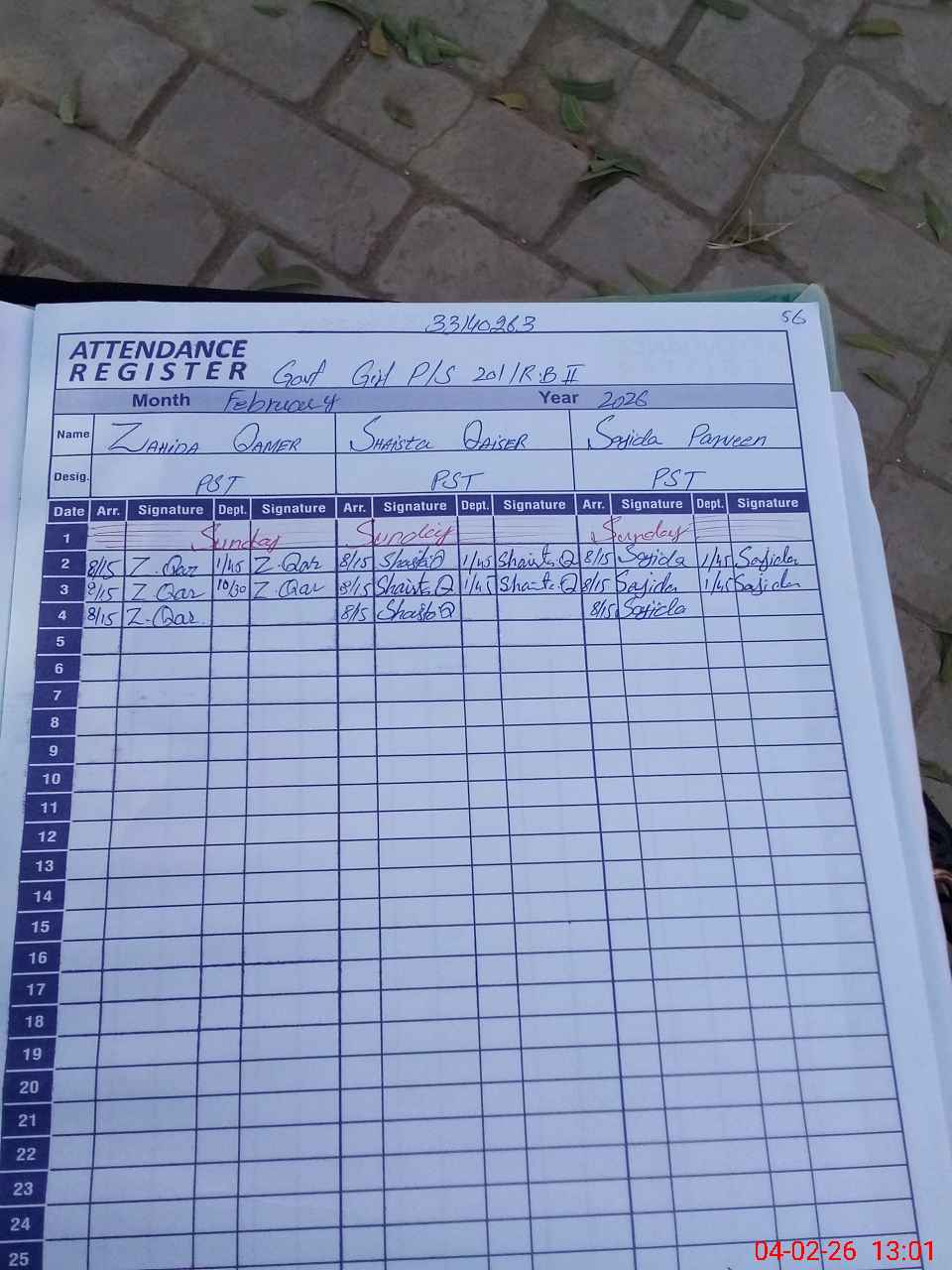 | Name: Za**** Qa**** Designation: (School Headmaster's/Headmistress's) PST Phone/Cell Number: 03**** |