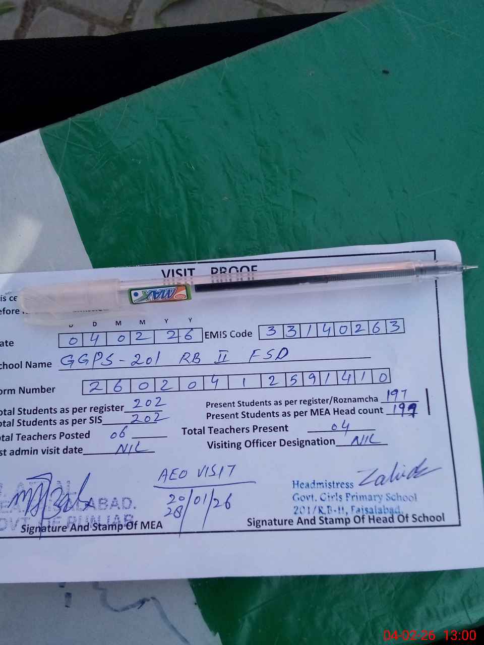| EMIS Code: 33140263 | Name of School: GGPS CHAK NO 201 RB II | |||