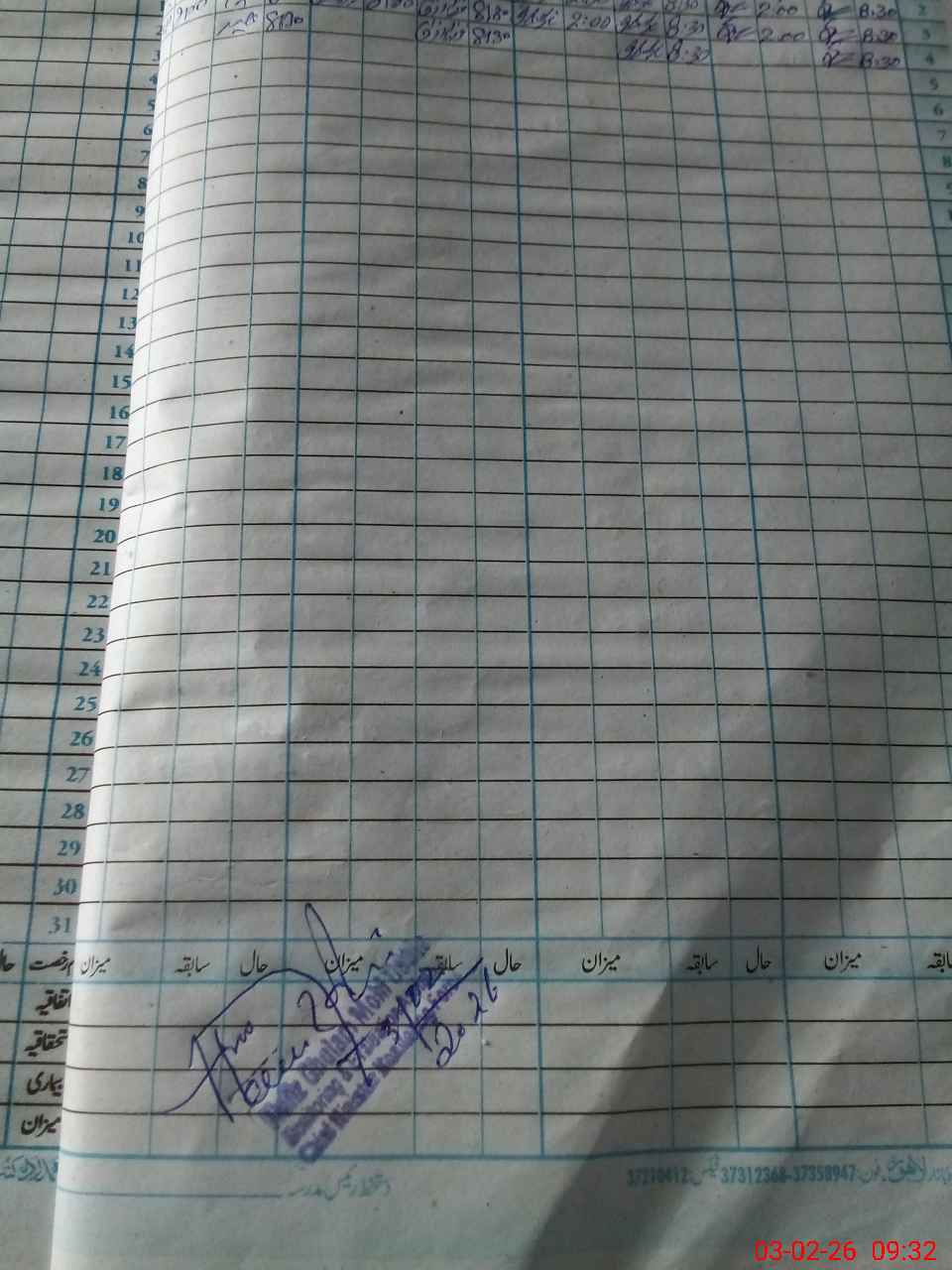 | CNIC | Full Name | Designation | R/C | Absence During Last Calender Month |