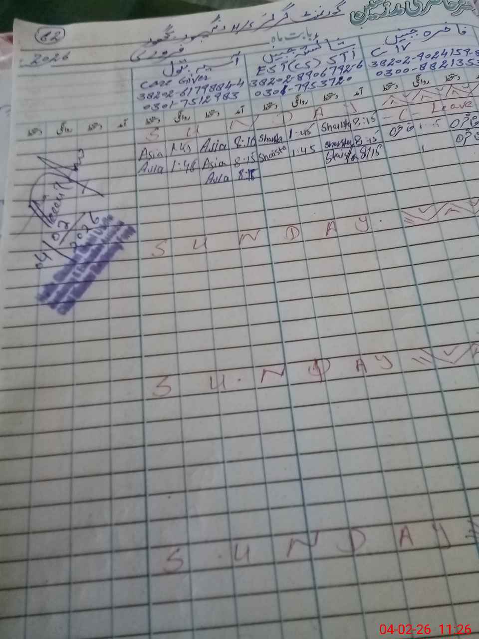 | Leave | Duty | Absent | Maternity | Medical | Ex- Pak |