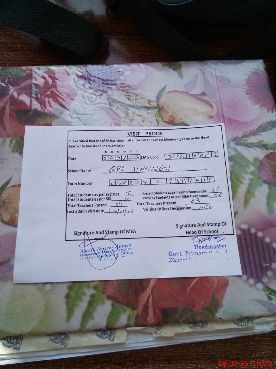 | EMIS Code: 37230093 | Name of School: GPS DHUNGI | |||