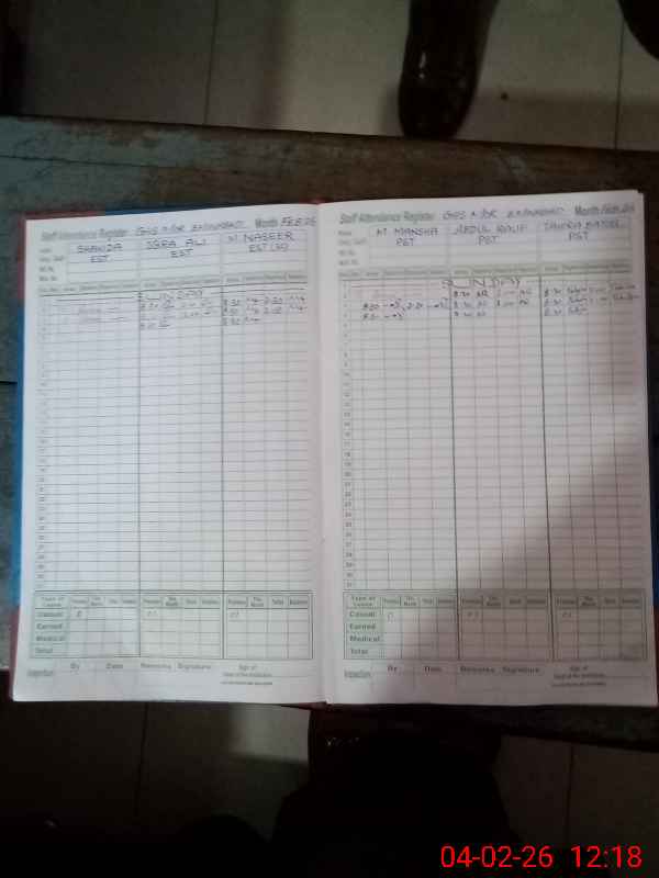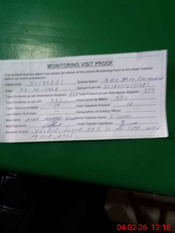 | Remarks (Use Separate Page if Required): Attendance of teaching staff and students on SIS Software is not updated Khalid Javed SST is on LPR w e f 14 October 2025 Data as per provided by School Staff and found during physical visit | |||||