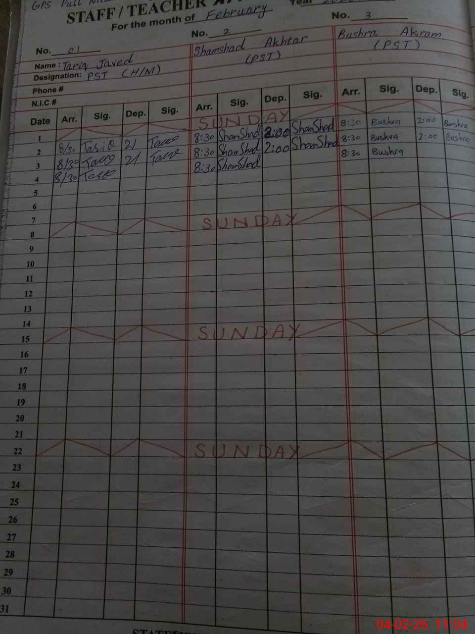 | Name: TA**** JA**** Designation: (School Headmaster's/Headmistress's) PST/PTC/JV Phone/Cell Number: 03**** |