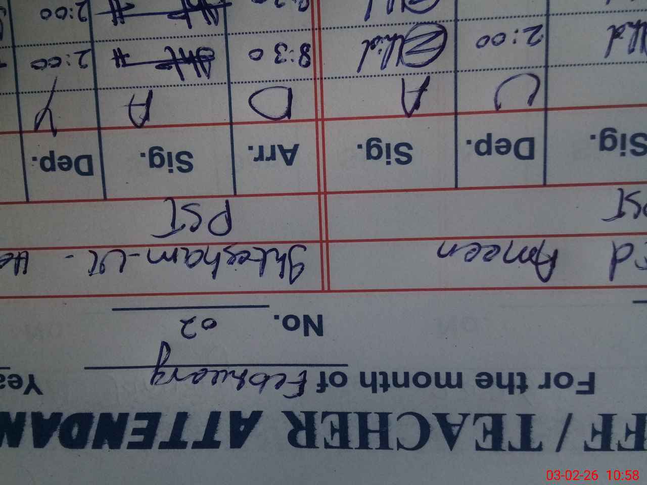 | CNIC | Full Name | Designation | R/C | Absence During Last Calender Month |