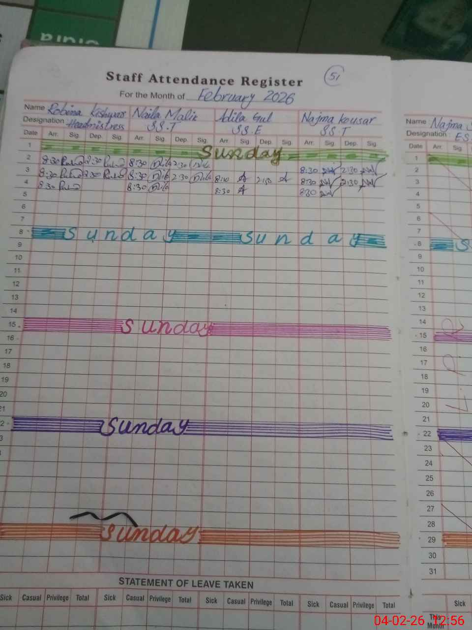 | Leave | Duty | Absent | Maternity | Medical | Ex- Pak |