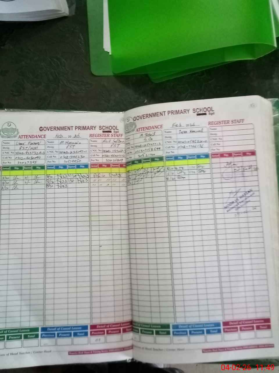 | CNIC | Full Name | Designation | R/C | Absence During Last Calender Month |