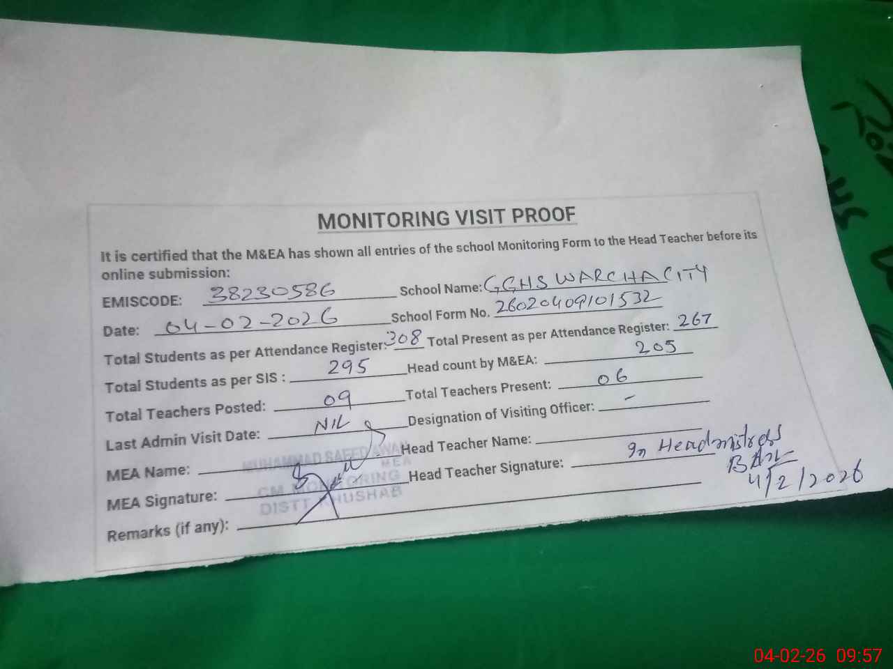 | EMIS Code: 38230586 | Name of School: GGHS WARCHHA CITY | |||
