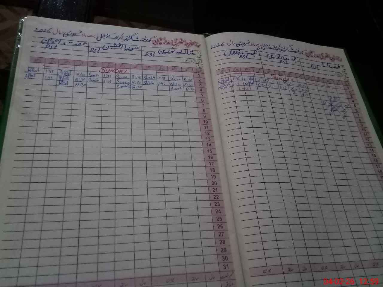 | CNIC | Full Name | Designation | R/C | Absence During Last Calender Month |
