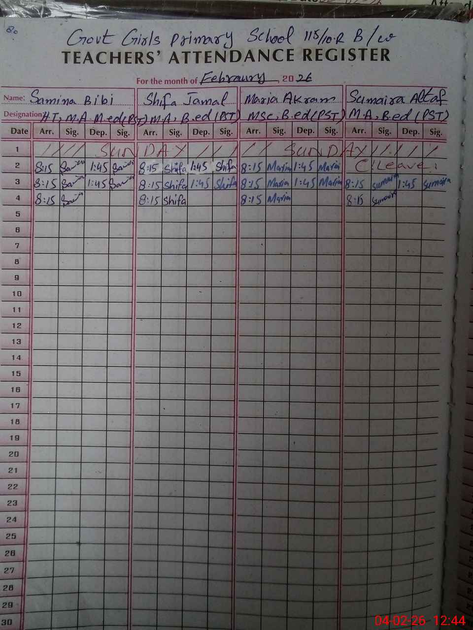 | Name: Sa**** Bi**** Designation: (School Headmaster's/Headmistress's) PST Phone/Cell Number: 03**** |