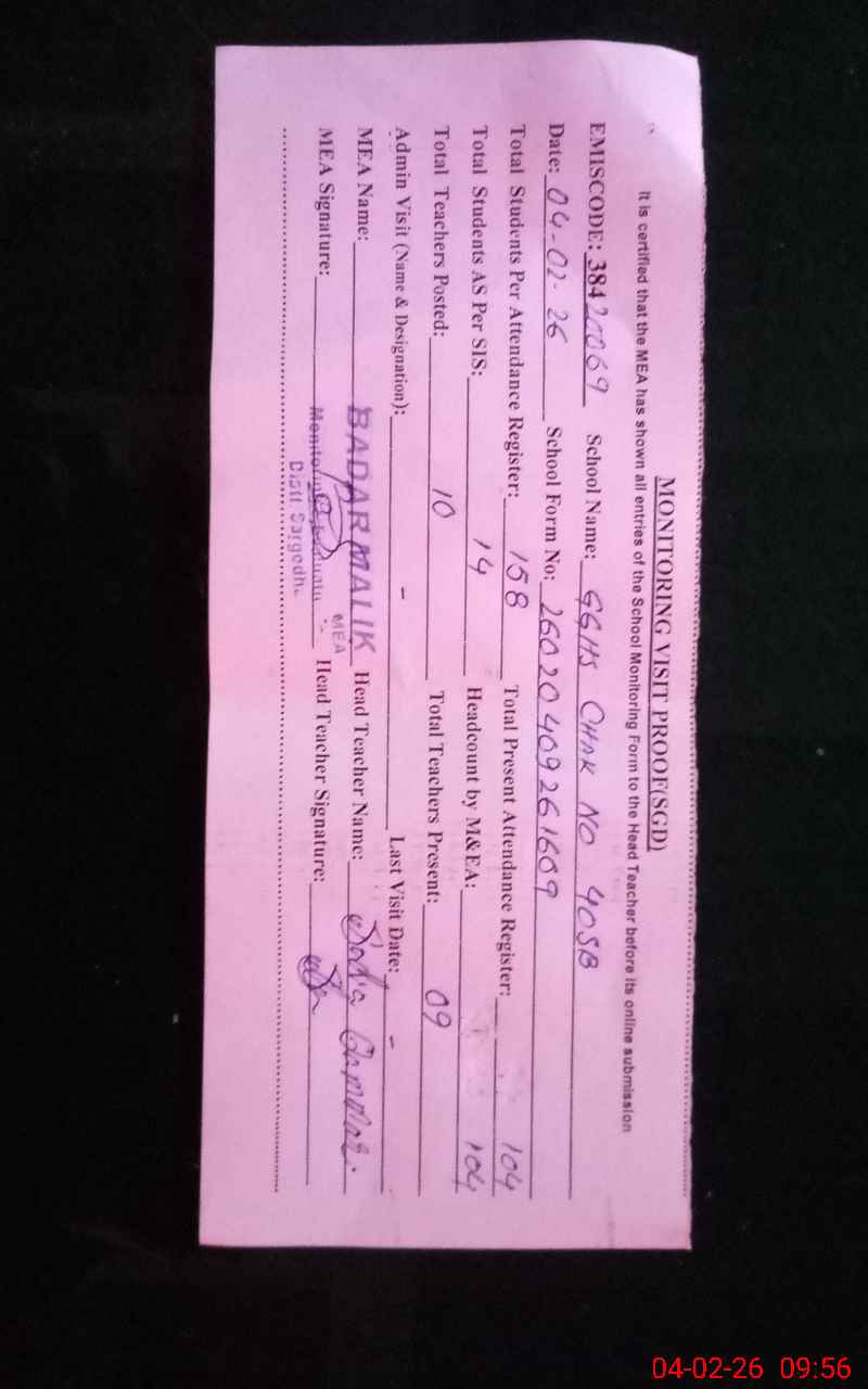 | EMIS Code: 38420069 | Name of School: GGHS CHAK NO.40 SB | |||