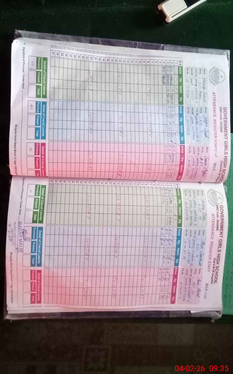 | CNIC | Full Name | Designation | R/C | Absence During Last Calender Month |