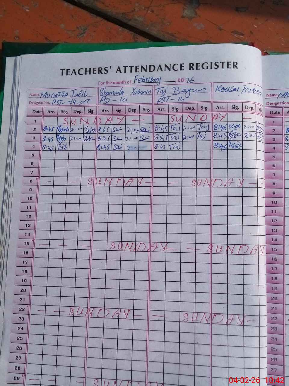 | Attendance Register | Head Teacher | MEA with School | Visit Proof |