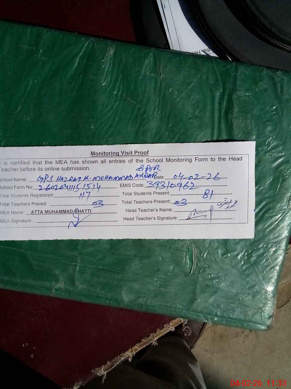| EMIS Code: 39310962 | Name of School: GPS HAZRAT KHAWAJA M AKBAR BASIR PUR | |||
