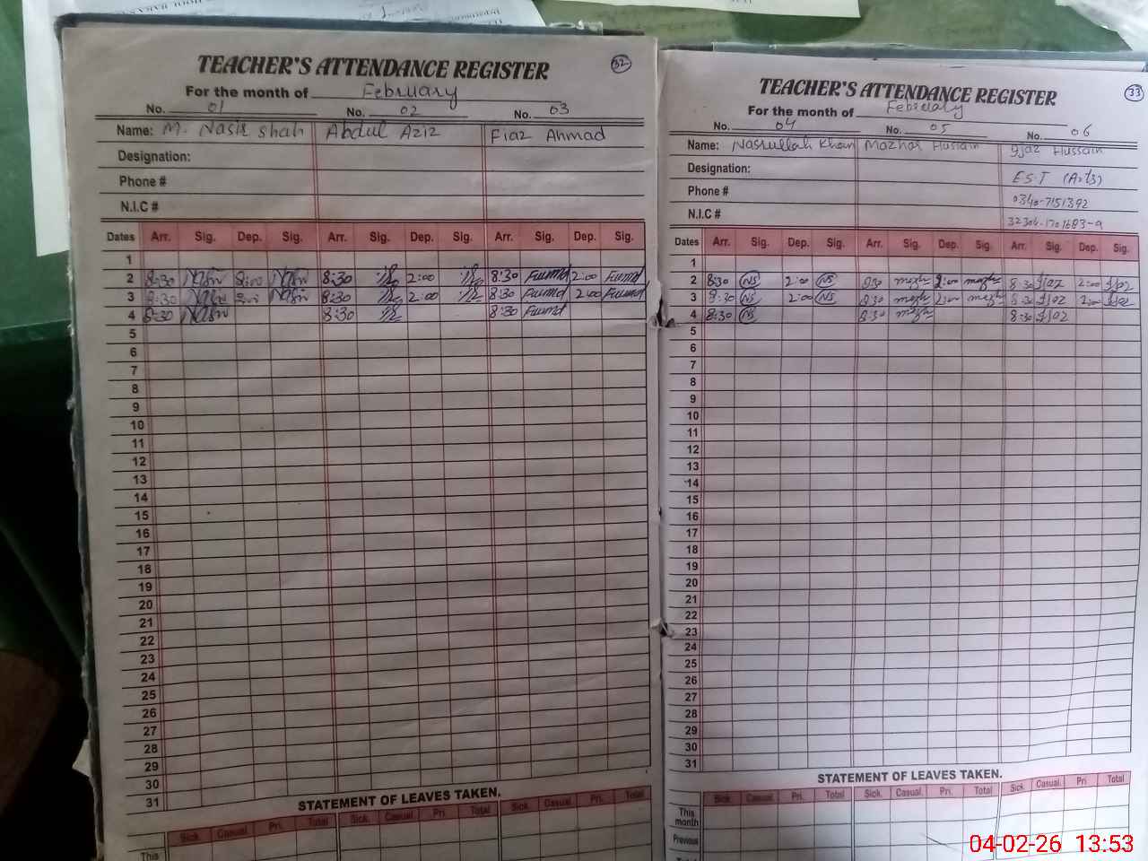| Name: SH**** KH**** Designation: (School Headmaster's/Headmistress's) S.S.T.MATH Phone/Cell Number: 03**** |