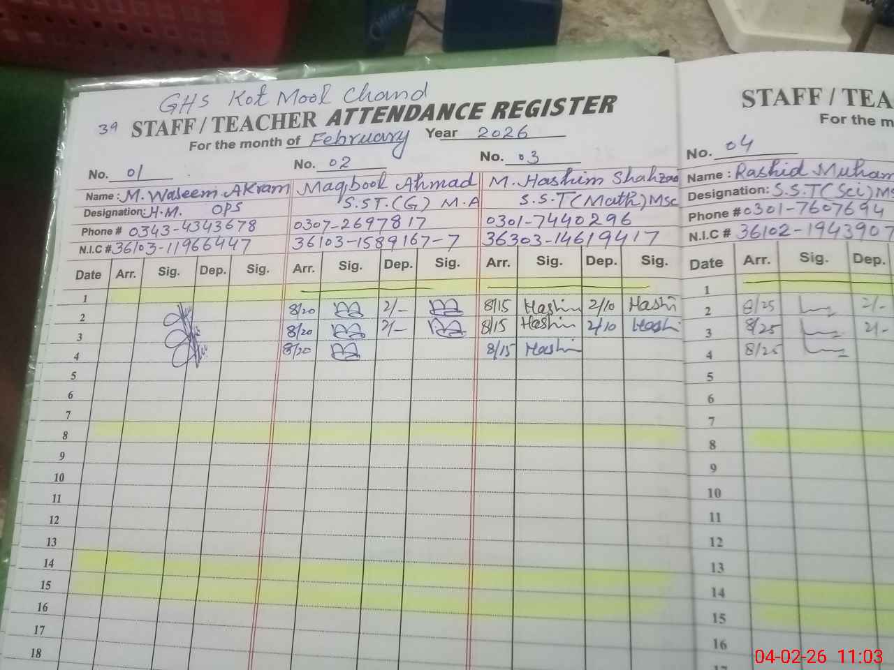 | Name: Mu**** Wa**** Ak**** Designation: (School Headmaster's/Headmistress's) SST OPS Phone/Cell Number: 03**** |