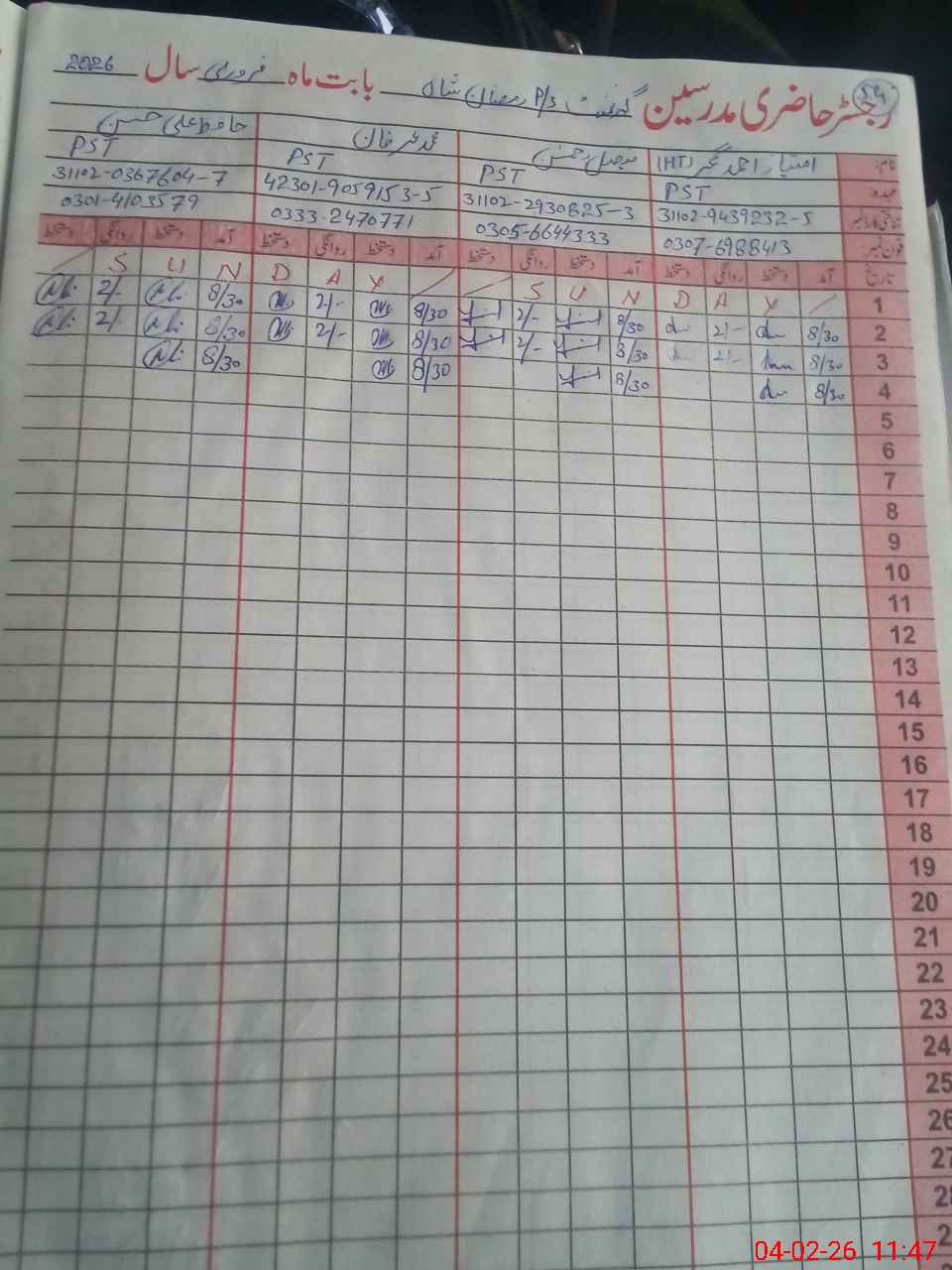 | Name: IM**** AH**** Designation: (School Headmaster's/Headmistress's) PST Phone/Cell Number: 03**** |