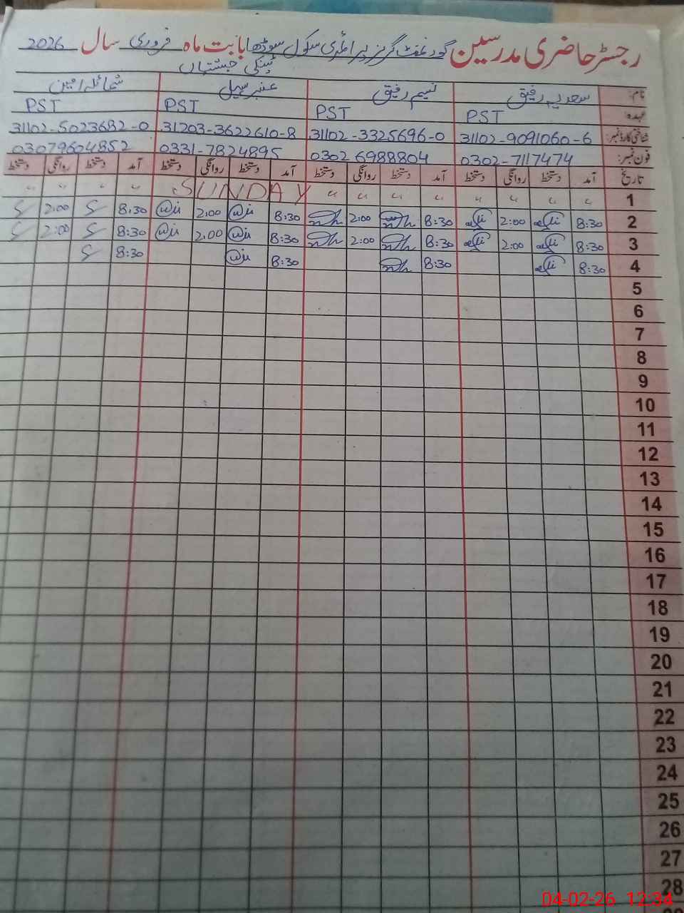 | Name: Sa**** Ra**** Designation: (School Headmaster's/Headmistress's) ESE SCI MATH Phone/Cell Number: 03**** |