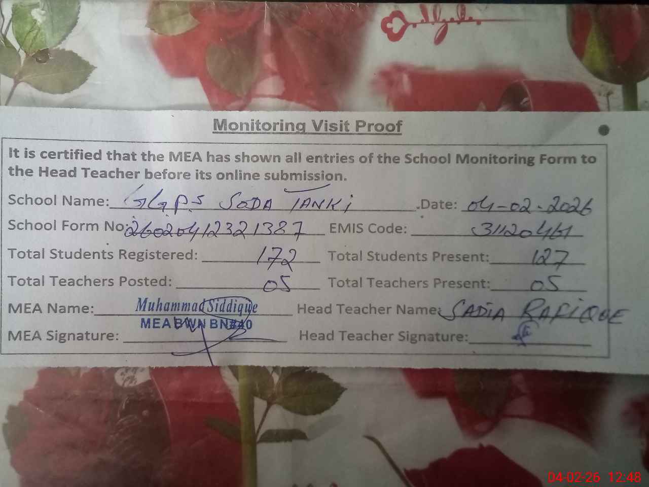 | EMIS Code: 31120461 | Name of School: GGPS SODAH TANKI | |||