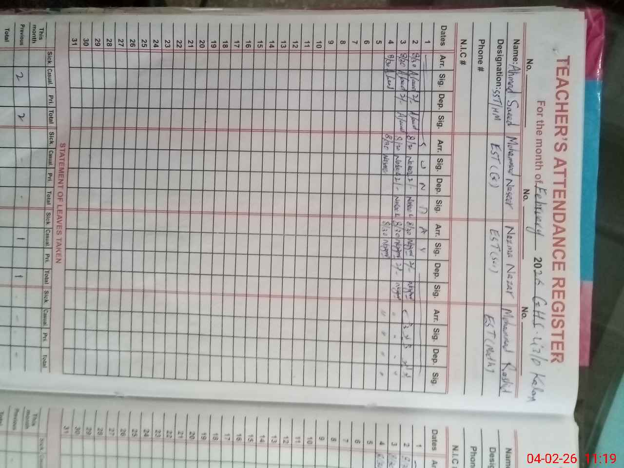 | Name: AH**** SA**** Designation: (School Headmaster's/Headmistress's) S.S.T.(Science) Phone/Cell Number: 03**** |