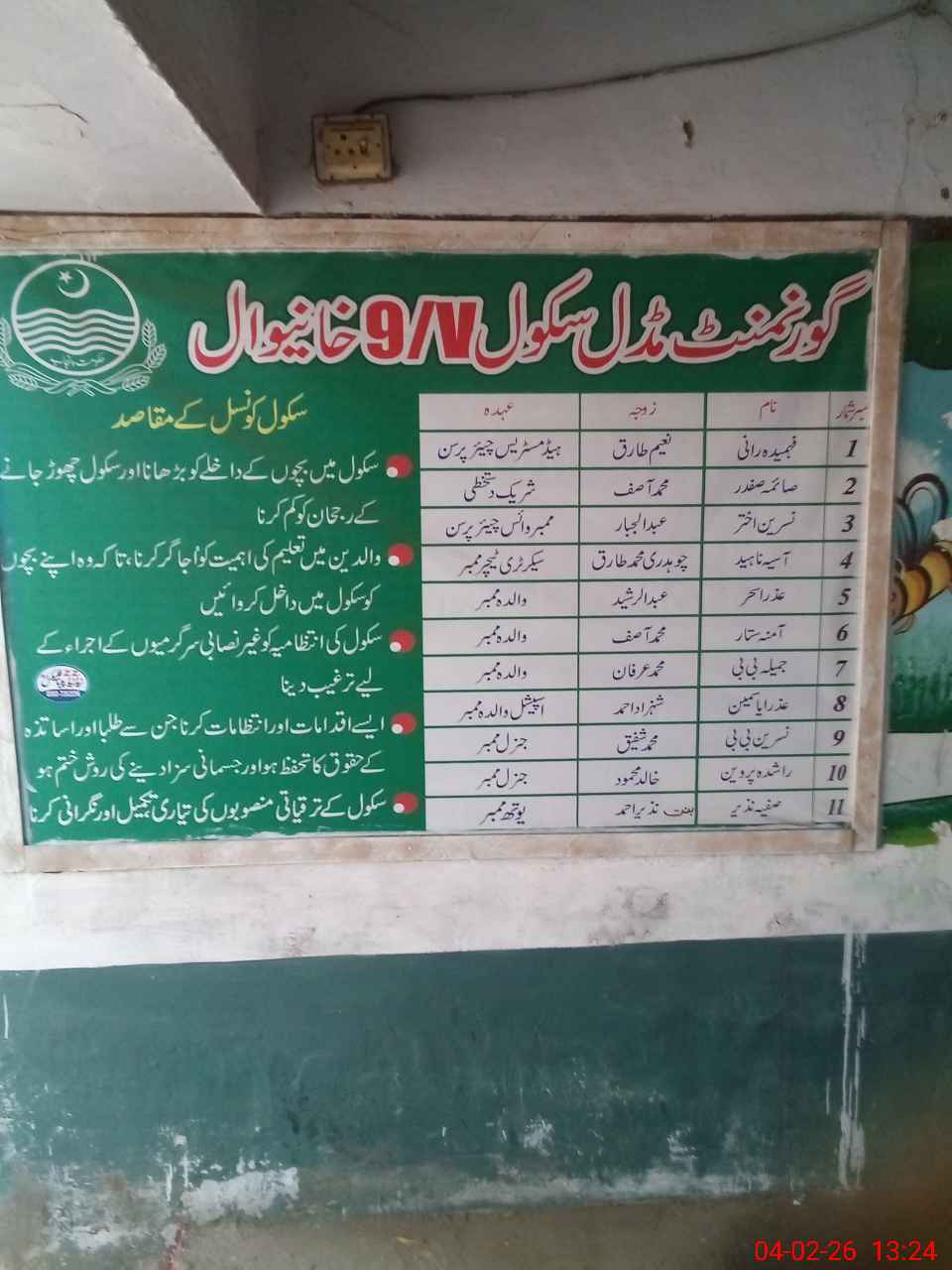 | EMIS Code: 36420092 | Name of School: GGES 9/V, KHANEWAL | |||