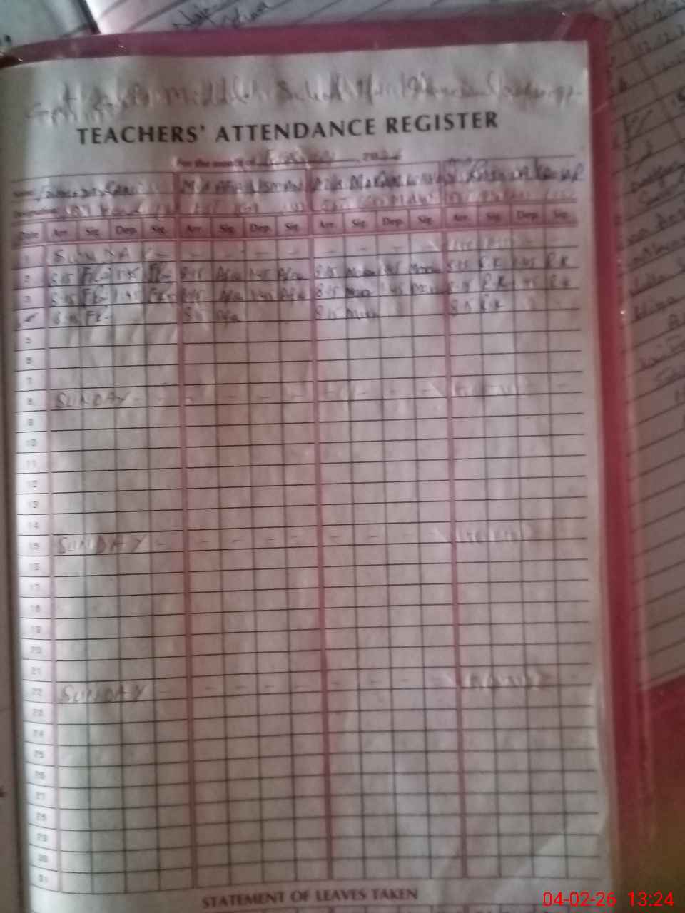 | Leave | Duty | Absent | Maternity | Medical | Ex- Pak |