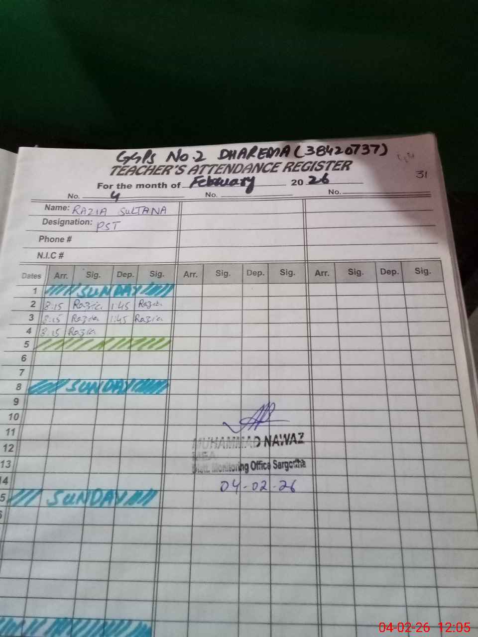 | District: SARGODHA | Tehsil: SARGODHA | Markaz: MARI - FEMALE | Level: Primary | |