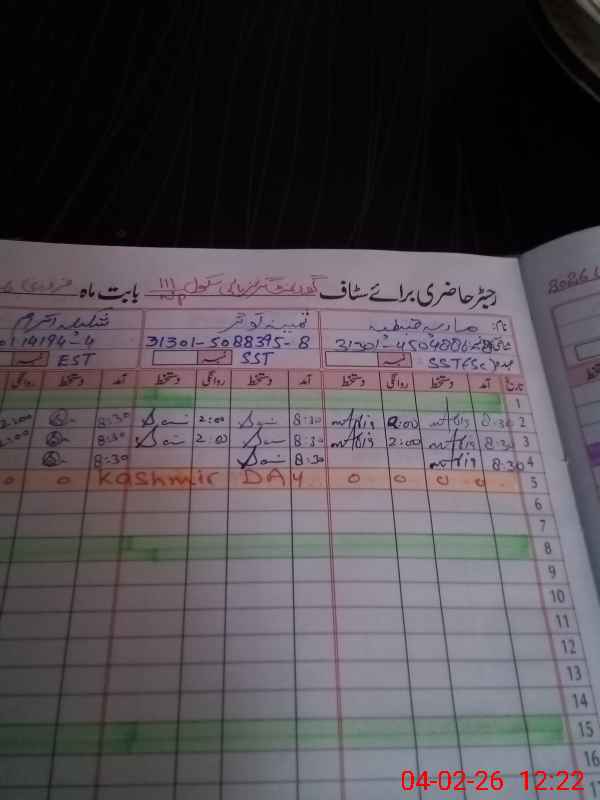 | CNIC | Full Name | Designation | R/C | Absence During Last Calender Month |